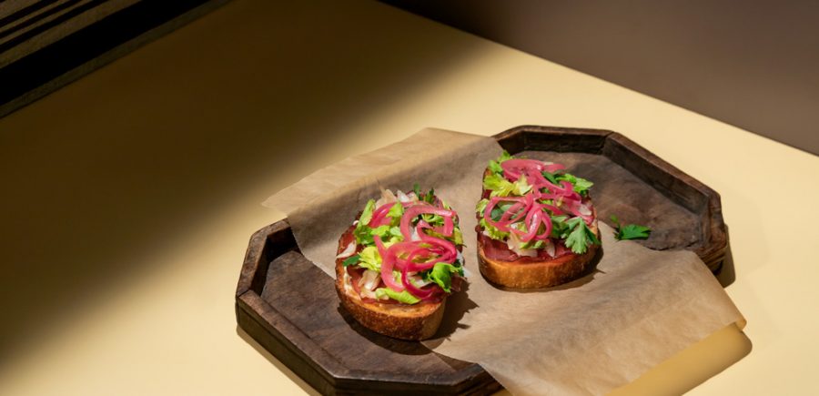 A smoked trout and bresaola tartine starts along the lines of a traditional smoked trout sandwich: you’ve got your carbs (sourdough toast), creaminess (crème fraiche), smoked fish, and the salty finish of pickled red onions. Then we, of course, had to see what Bresaola would do to this beauty, and whaddya know, the combo knocked our socks off! We like to be unpredictable like that. Just like that, a new classic is born.