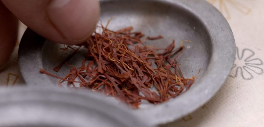 Add the onion, garlic, and paprika to the pan, season with the salt and as much pepper as you like, and cook, stirring occasionally until the onion softens, 3 to 4 minutes. Rotate the pan and shift it to the cooler part of the grill as necessary to avoid burning. Stir in the tomatoes and cook, covered, until the tomatoes have darkened, about 4 minutes. Add the saffron to the wine, pour in, and cook, with the grill covered, until the wine is mostly reduced, about 5 minutes. Add the rice, stirring to coat evenly. Stir in 4 cups of the seafood stock and spread the rice into an even layer. Close the grill and let simmer with the vents open until most of the liquid has been absorbed for about 15 minutes. If the rice is too dry at this point, add more stock. Rotate pan halfway through and adjust heat as necessary to maintain a simmer.