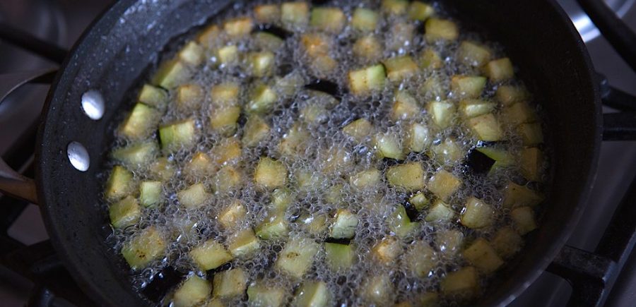 When you fry, be sure that the oil is very hot before adding the eggplant, and avoid crowding the pan. A single layer of eggplant pieces, with a little room between each one, will help you fry quickly and evenly. Use plenty of paper towels to drain, and don’t press or squeeze the eggplant. Let it drain on its own.